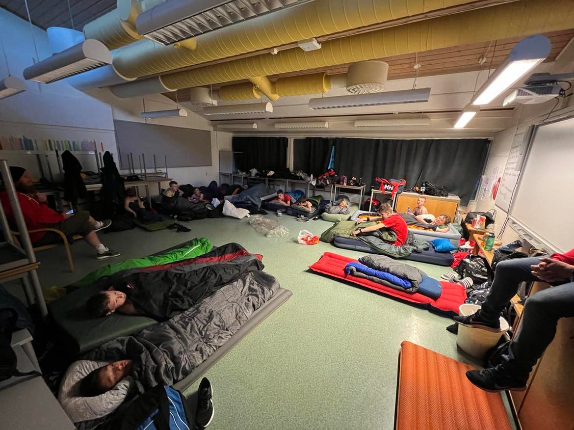 3 fylte busser, flere biler og foreldre som kom etter i både bobil og biler for å bo på camping i bobil, telt eller hos slekt/venner, airbnb eller hotell.