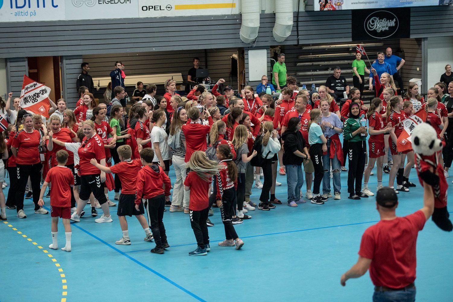 • et yrende folkehav med spillere, lagledere, publikum