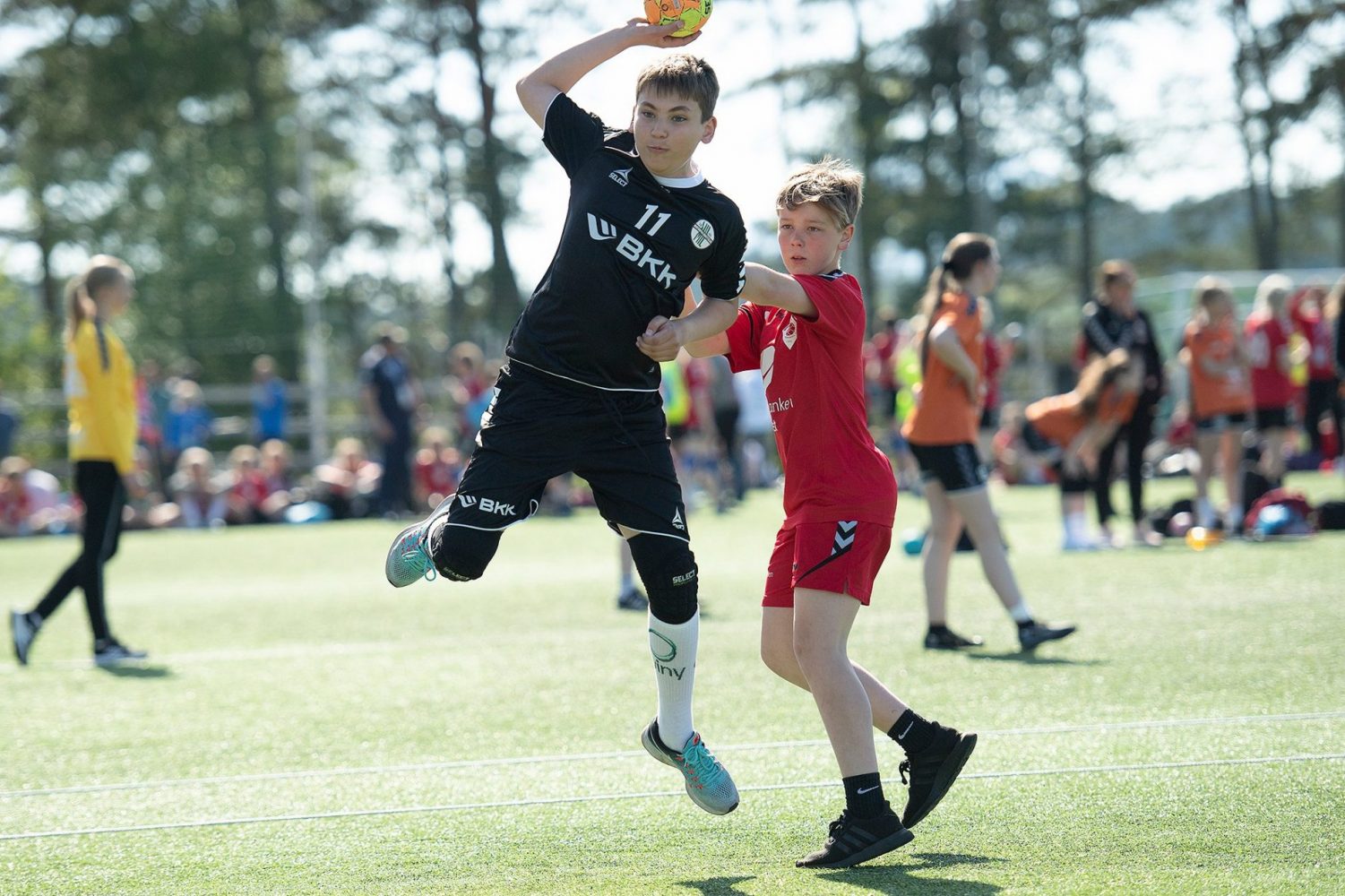 De yngste lagene spilte ute på Idrettsanlegget på kunstgressbaner. Her spant de avgårde så gummiknottene i gresset skvatt. Mange kamper hver dag.