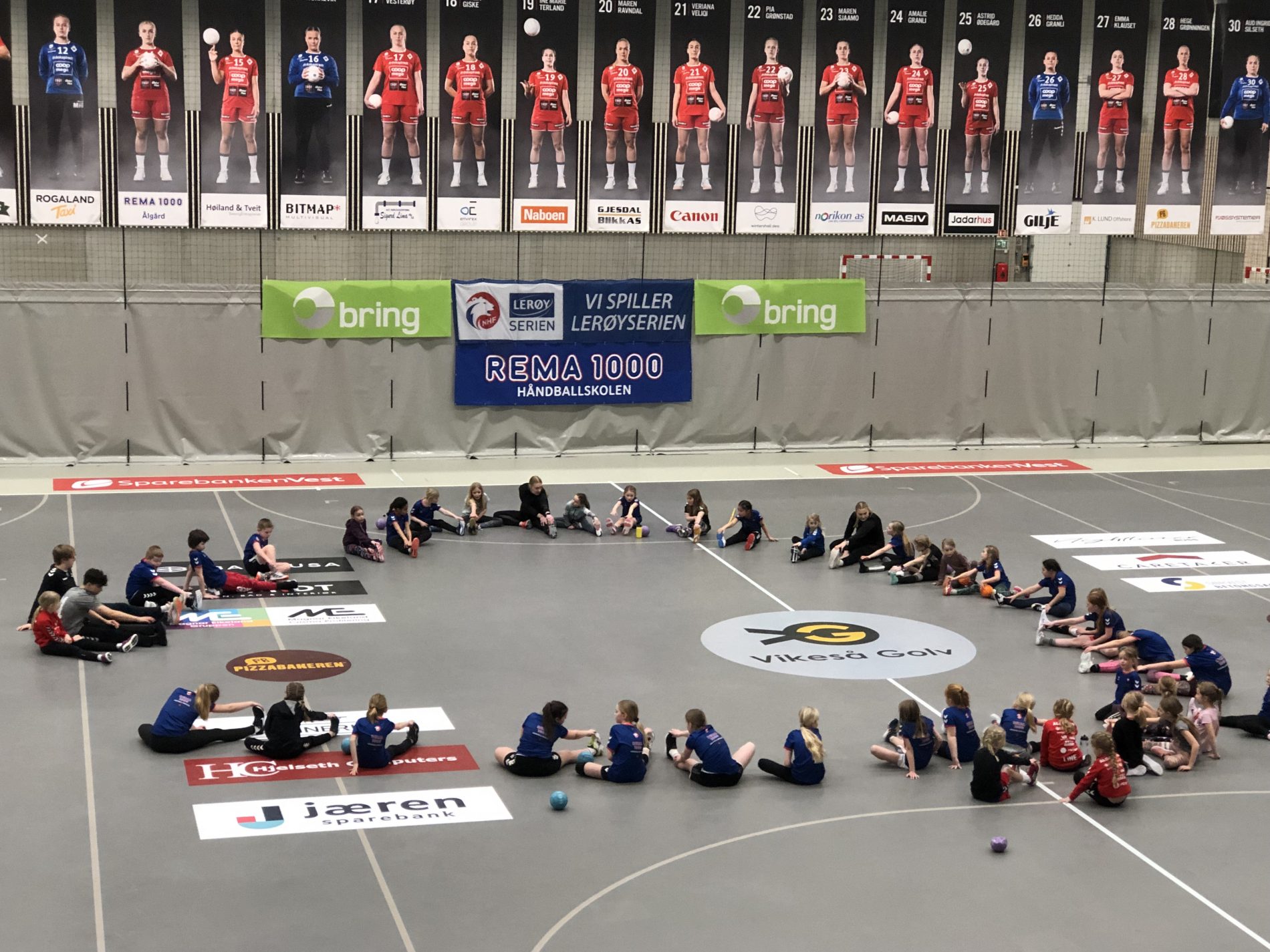 I samarbeid med Norge Håndballforbund så arrangerer vi Rema1000 Håndballskole. De tre første dagene er for barn i 1.-5.klasse. De to siste dagene kommer de fra 6.klasse og oppover. Det er flinke instruktører fra Ålgårddamene, junior og 16års-lagene som holder nesten 100 barn i aktivitet denne uken.