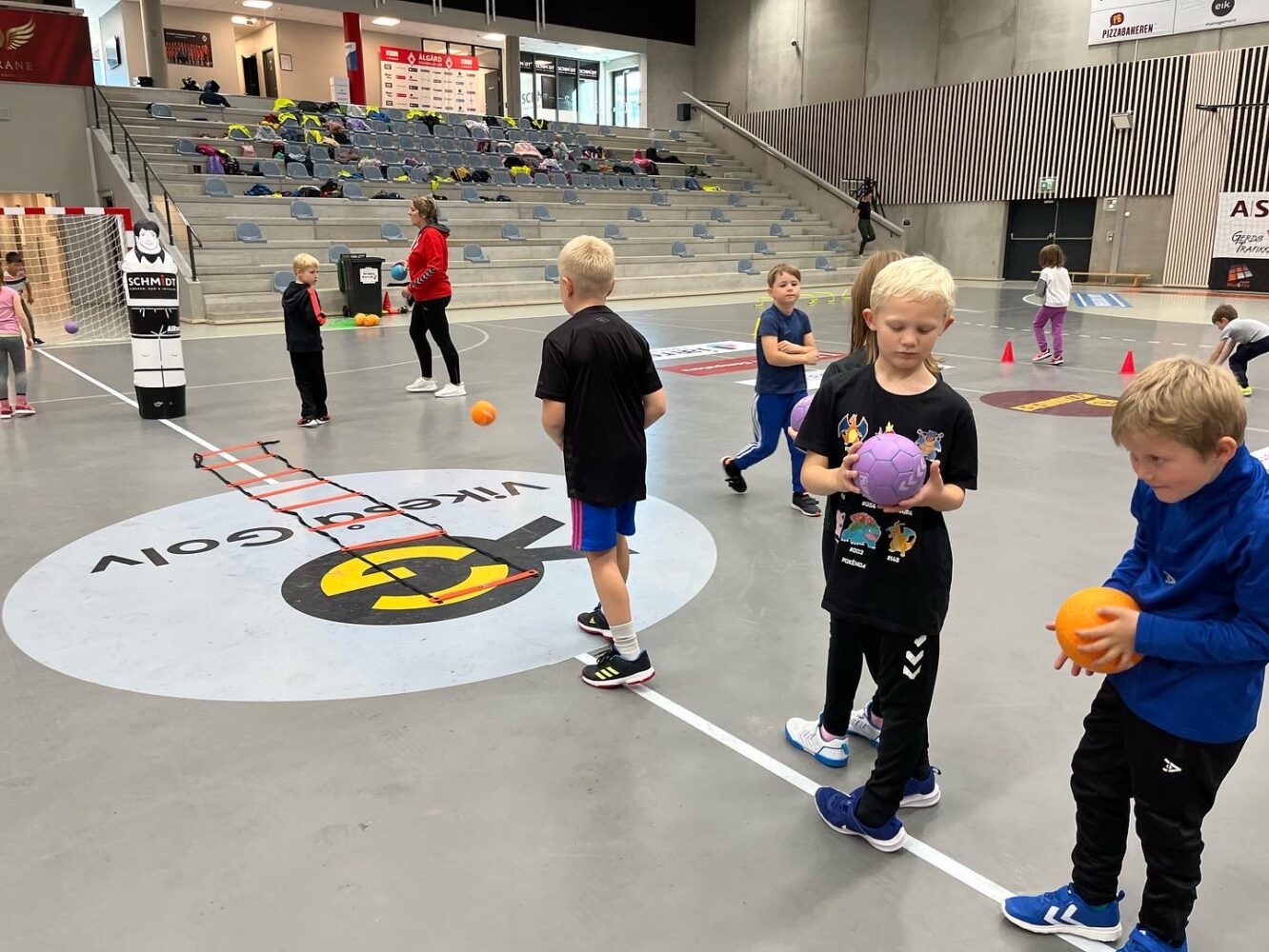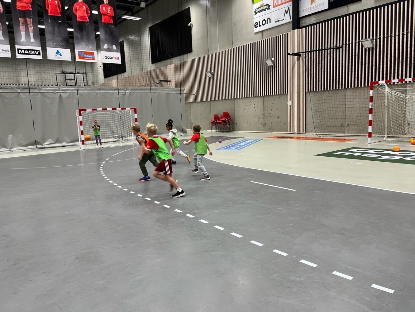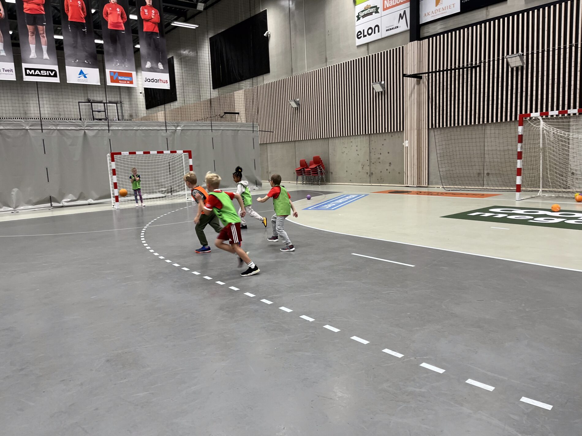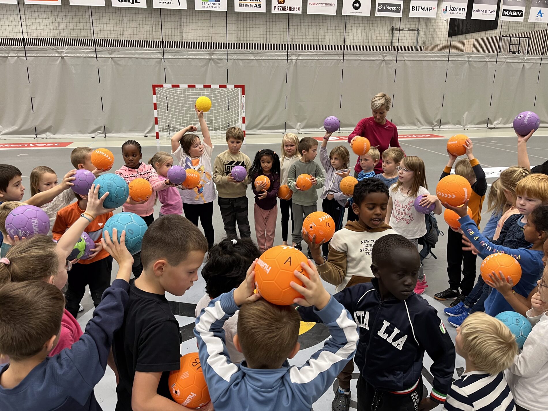 Kjekt å se så mange barn i hallen med ball.