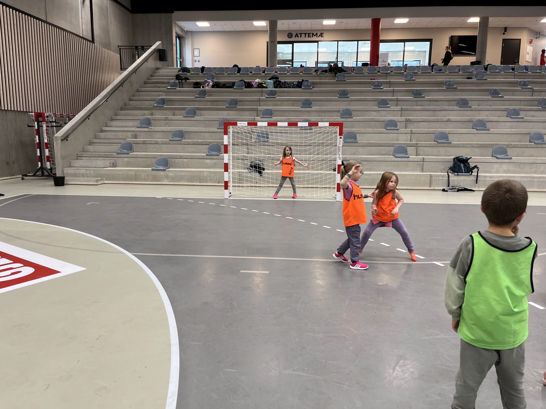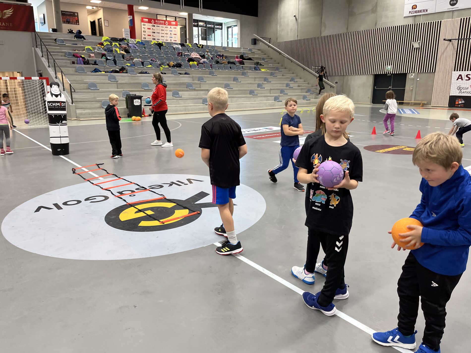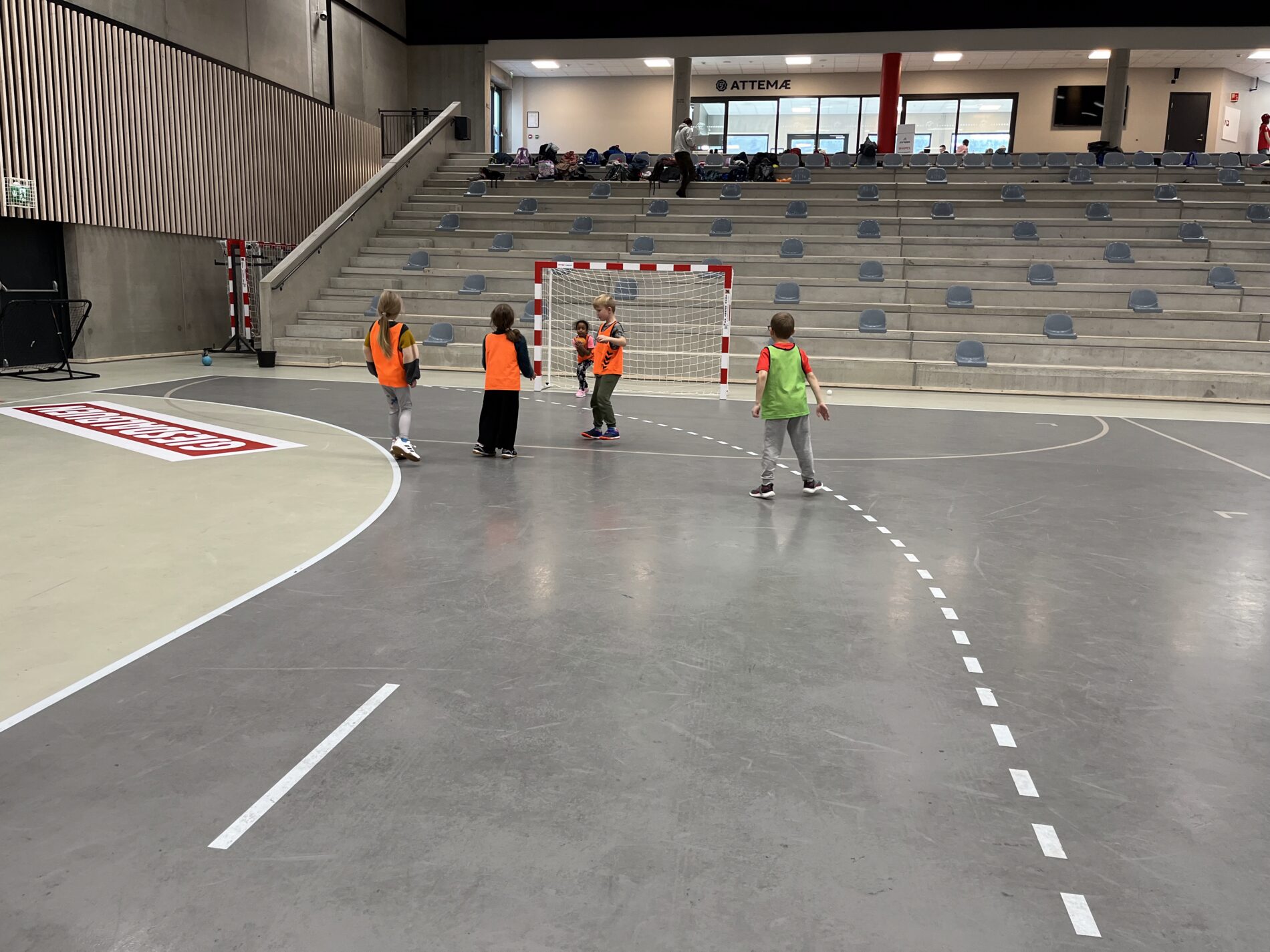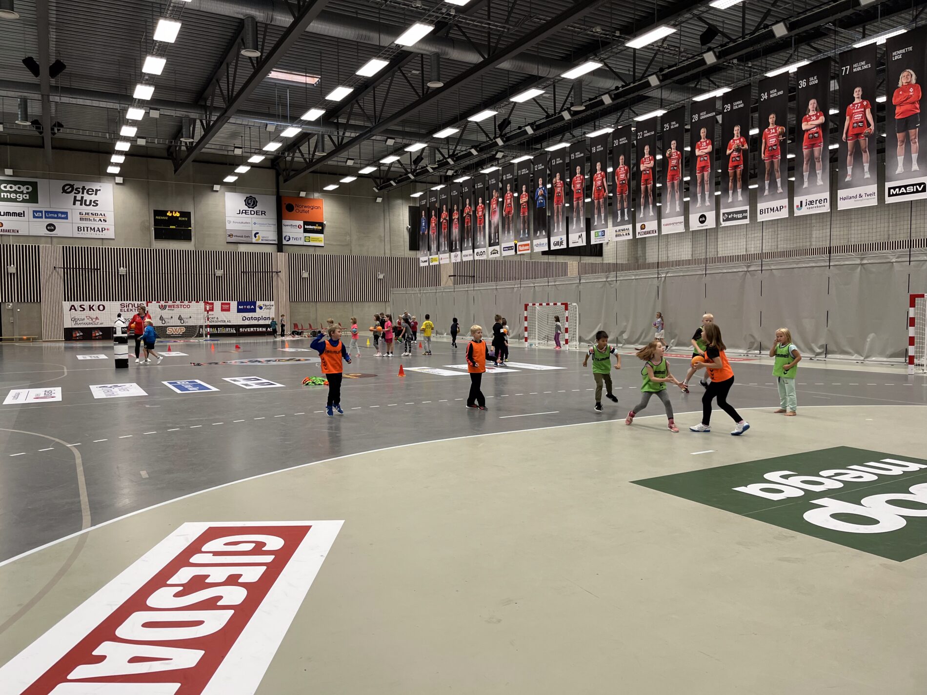 Kjekt å se så mange barn i hallen med ball.