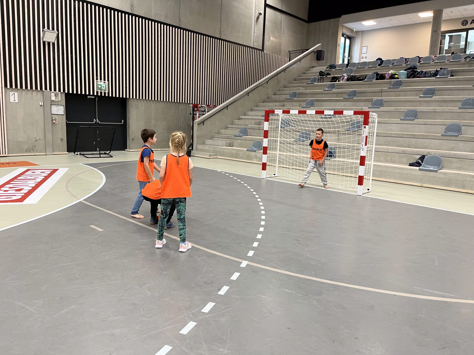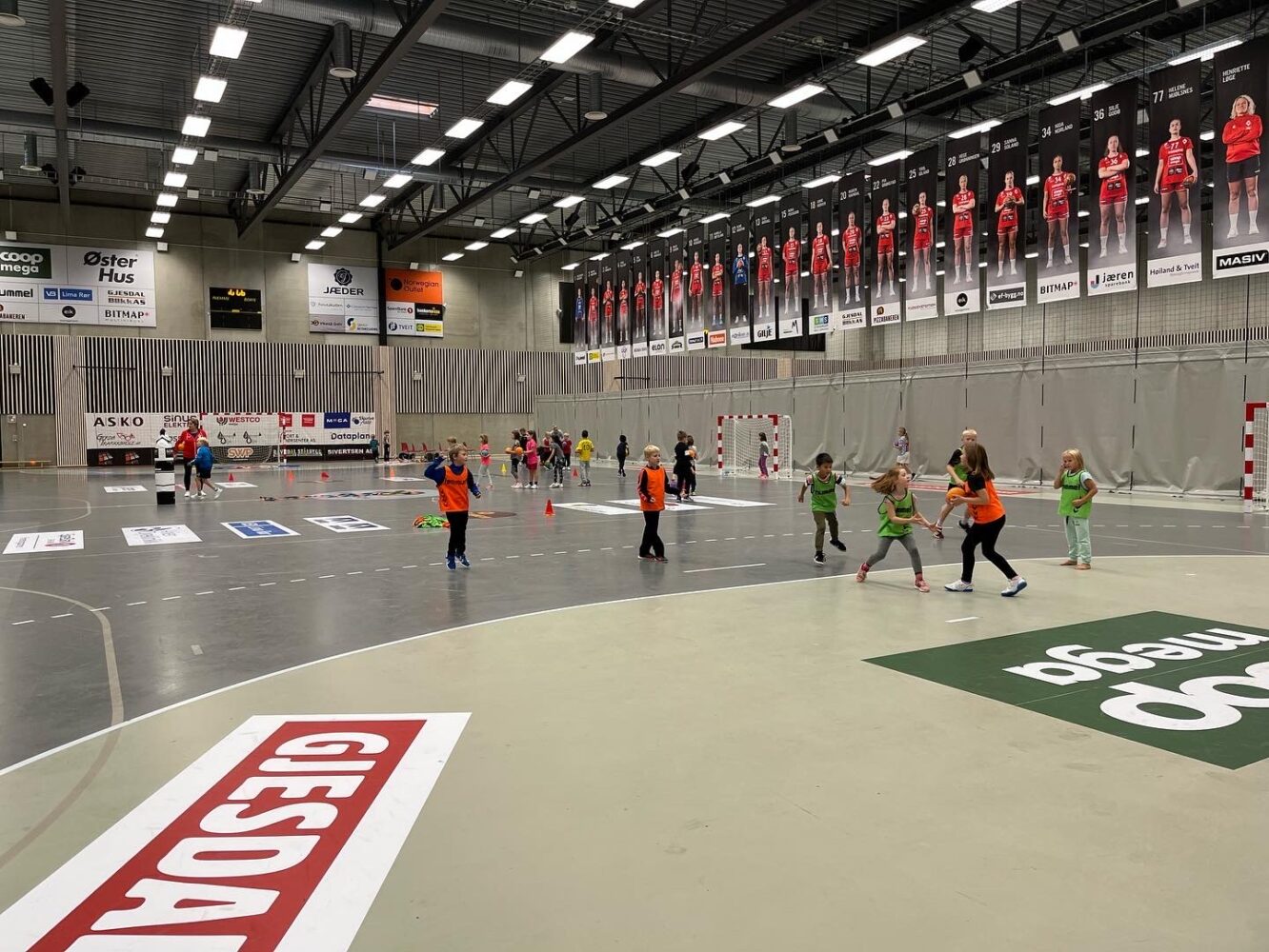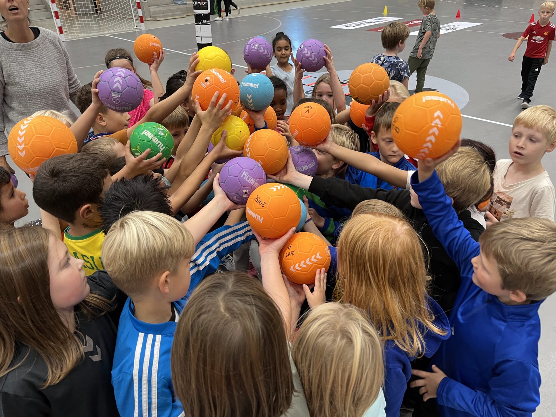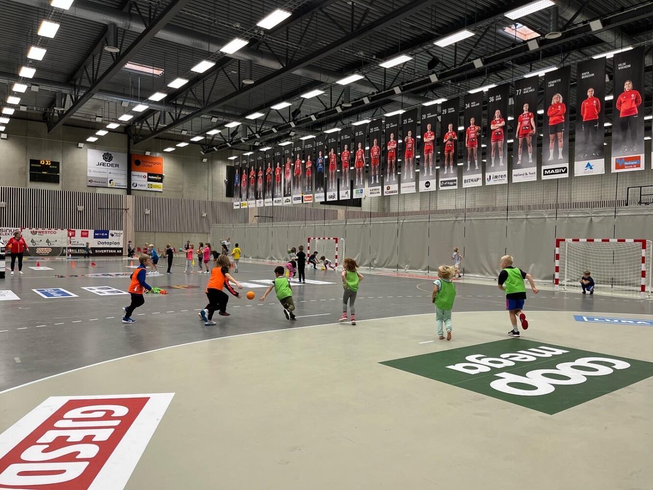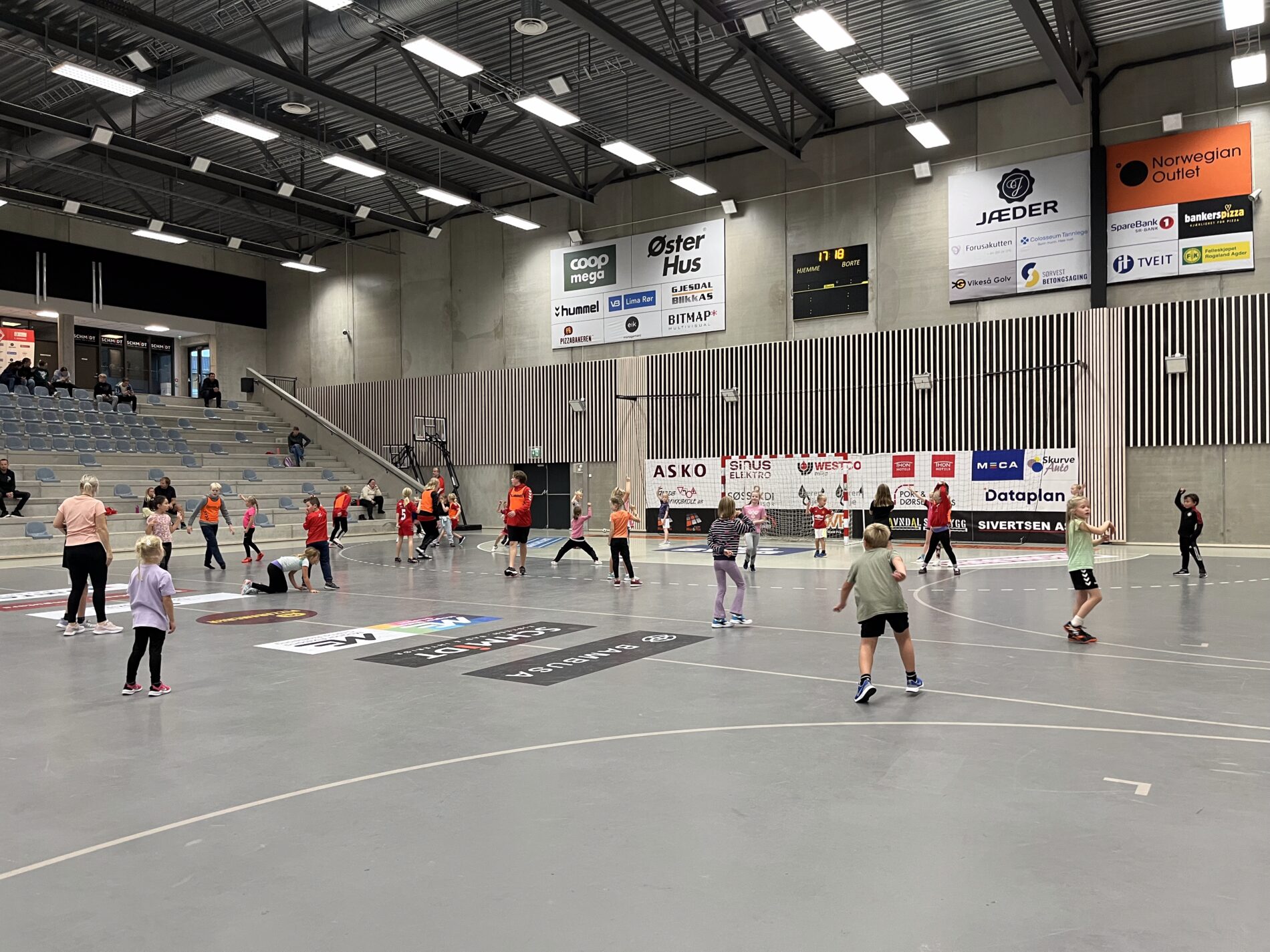 Kjekt å se så mange barn i hallen med ball.