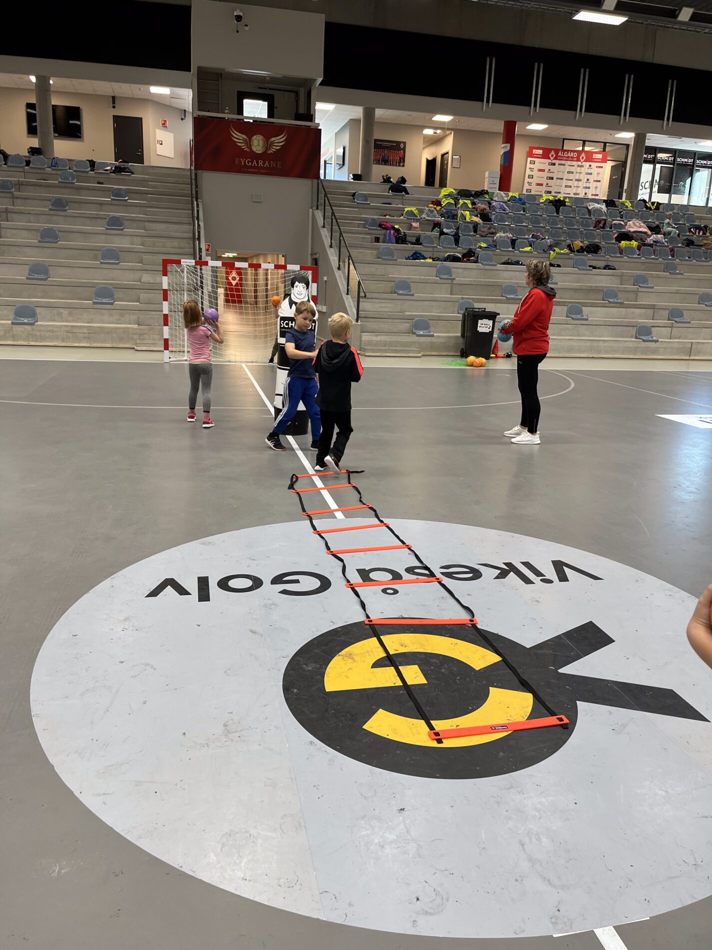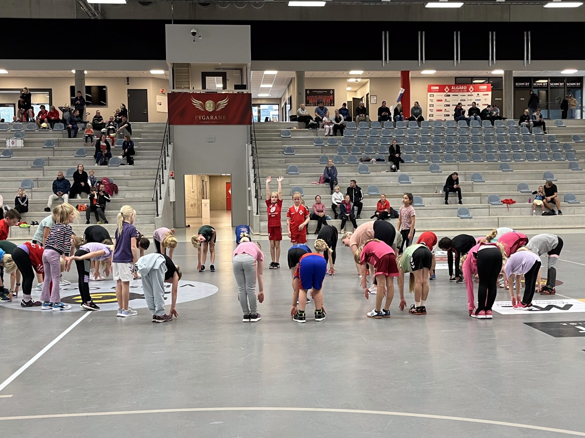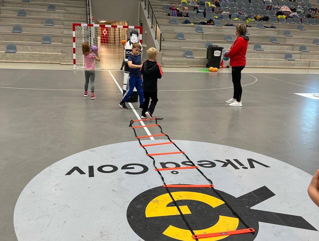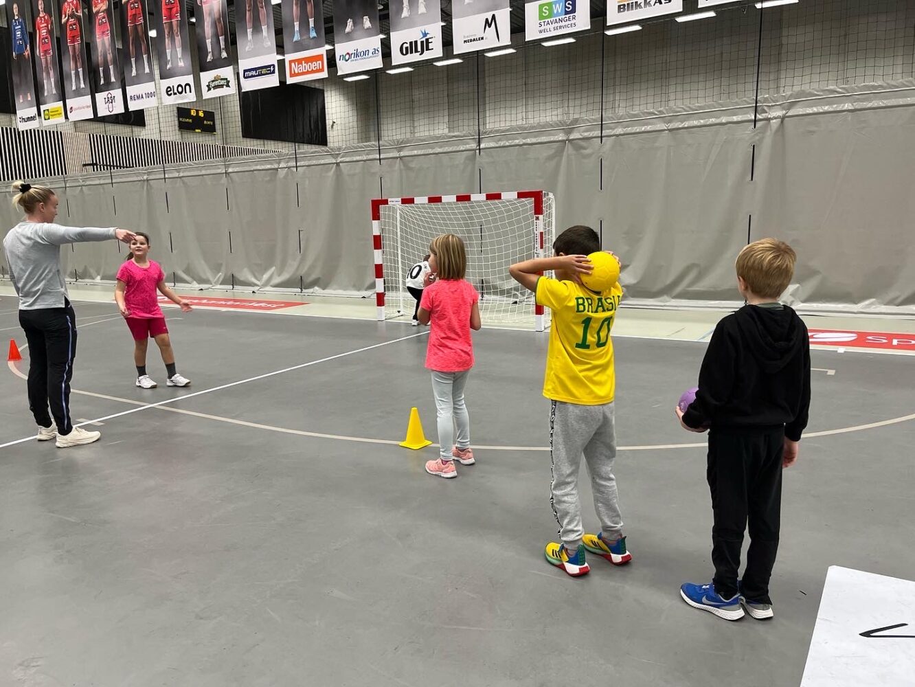 Kjekt å se så mange barn i hallen med ball.